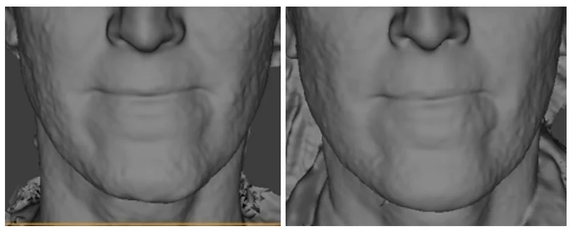 Asymmetry of the lower jaw, again corrected with NO SURGRY. These 3D pictures were taken after 8 months at a leading Dental Hospital in London (King’s college)