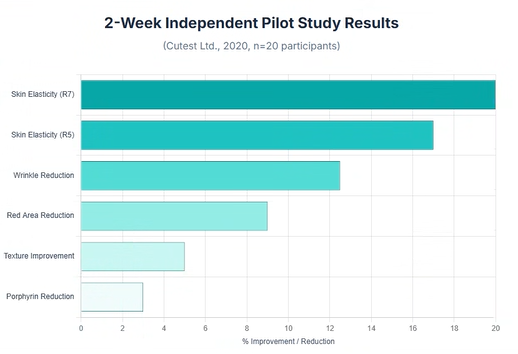 These studies focus on visible appearance: wrinkle depth, skin texture, elasticity, radiance, and overall facial freshness.